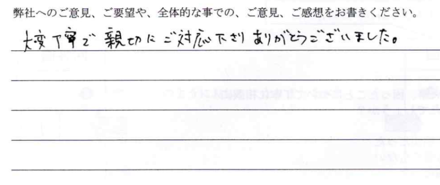 大変丁寧で親切にご対応下さり、ありがとうございました